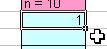 In C5 you will see the label “n = 10”. In this column, starting with row 6, you will enter the values of 10C0, 10C1,